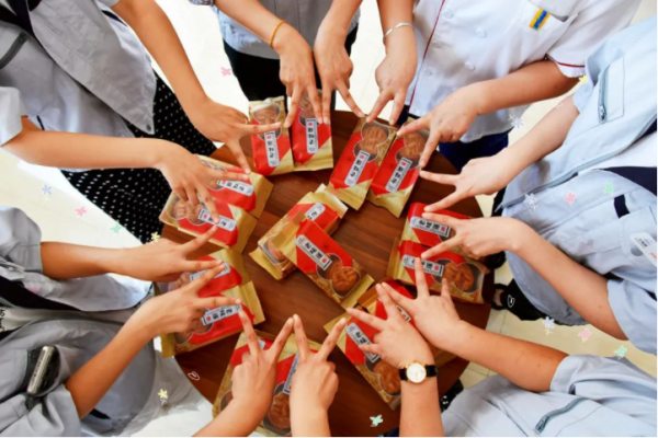 喜迎中秋佳節 中秋節將至,為了表達對員工們的真誠祝福和關懷,9月8日上午,集團公司總經理助理王建全、宮明杰,人力資源部部長高克忠,工會主席李金霞一行帶隊走訪各部門、車間,將公司工會為全體員工準備的傳統手工月餅親自發放到了員工手中。 現場員工表示,感謝公司在發放了過節福利費之外,還專門為大家訂制了節日月餅。小小的月餅情誼深厚,體現了公司對員工的特別心意,使員工增強了歸屬感和認同感。一些員工在“嘗鮮”后紛紛反饋稱,月餅香甜可口,能回憶起小時候的味道,會和家人共同分享。