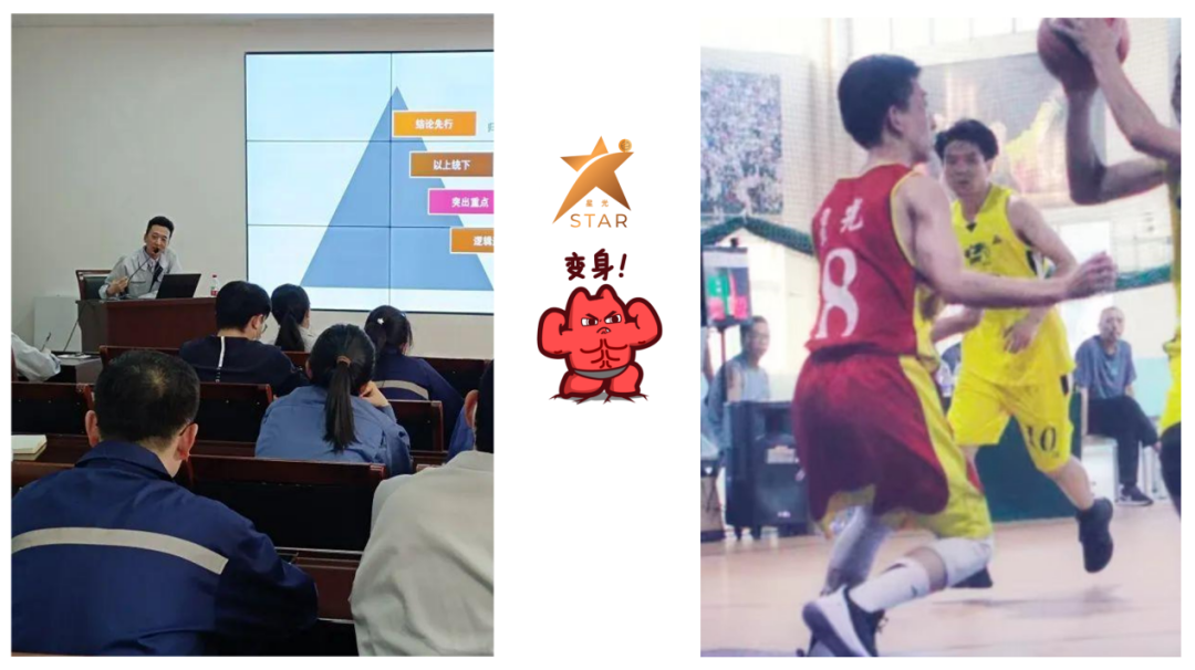 星光隊是由集團本部機關和表面加工部聯合組成的球隊,他們作風頑強,雖然身高和體格都處于下風,但以快速反擊和精準投籃作為取勝之匙,最終小組賽突圍成功。在他們的比賽中,你總是會看到一名控球出色,突破犀利的球員—劉偉。