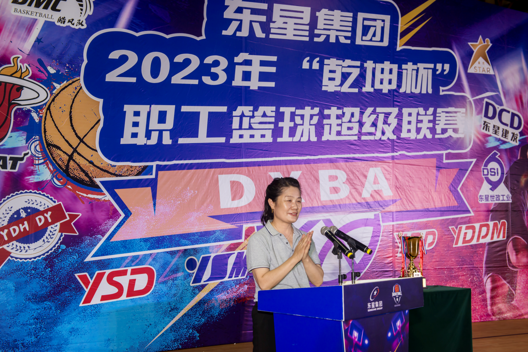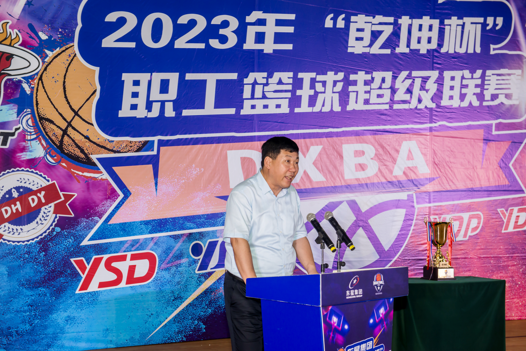 集團公司董事長、總經理于大偉在致辭中向各參賽隊的運動員、教練員表示了熱烈的祝賀,向為賽事組織、實施和保障做出突出貢獻的裁判員、工作人員以及各位熱心觀眾表示了衷心的感謝。于總指出,本屆“乾坤杯”職工籃球超級聯賽是常態化疫情防控以來,集團公司工會組織實施的規模最大、范圍最廣的一次體育賽事。10支球隊、100位運動員在20多場比賽中,昂揚青春,揮灑激情,結下了深厚的友誼。比賽不但提振了人心,鼓舞了士氣,更涌現出了一批復合型人才和高水平團隊。精彩的賽事,帶動了基層員工自發加入體育鍛煉,追求健康向上的生活方式,是全民健身在東星落地生根的真實寫照。下一步,集團公司還將持續推出各種類型的文體活動,著力打造東星文化品牌,持續提升員工的獲得感、歸屬感和幸福感,為集團公司高質量向前發展提供源源不斷的精神動力!于總號召集團公司廣大干部、職工,持續發揚“爭創一流、敢于拼搏”的體育精神,以這次比賽為契機,將活動過程中激發出的團隊意識和勇氣融入到日常工作中,銳意進取,勇攀高峰,在“行動2023、決戰2024、打贏三大戰役”的新征程上“摘金奪銀”,為實現“百年東星”的偉大夢想而不懈奮斗!