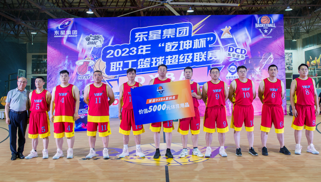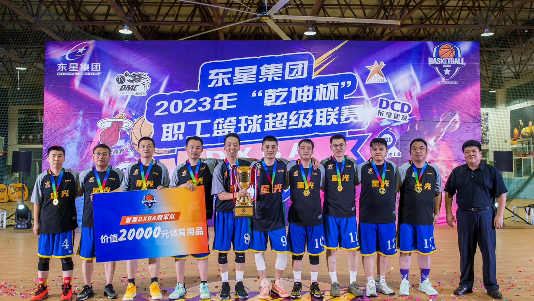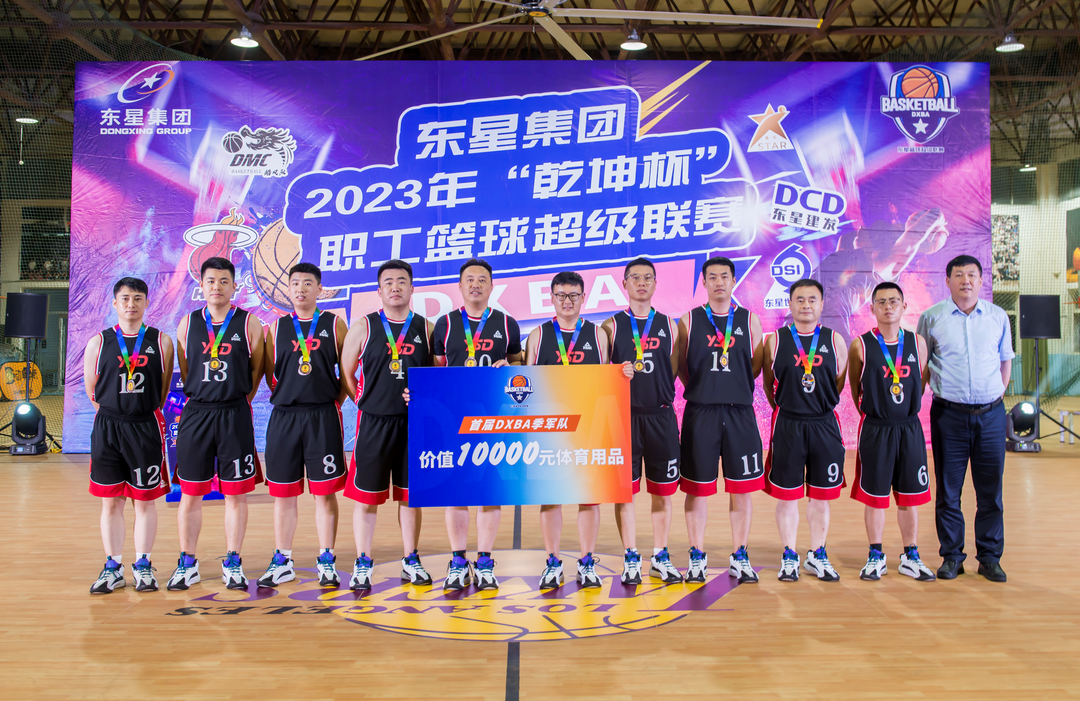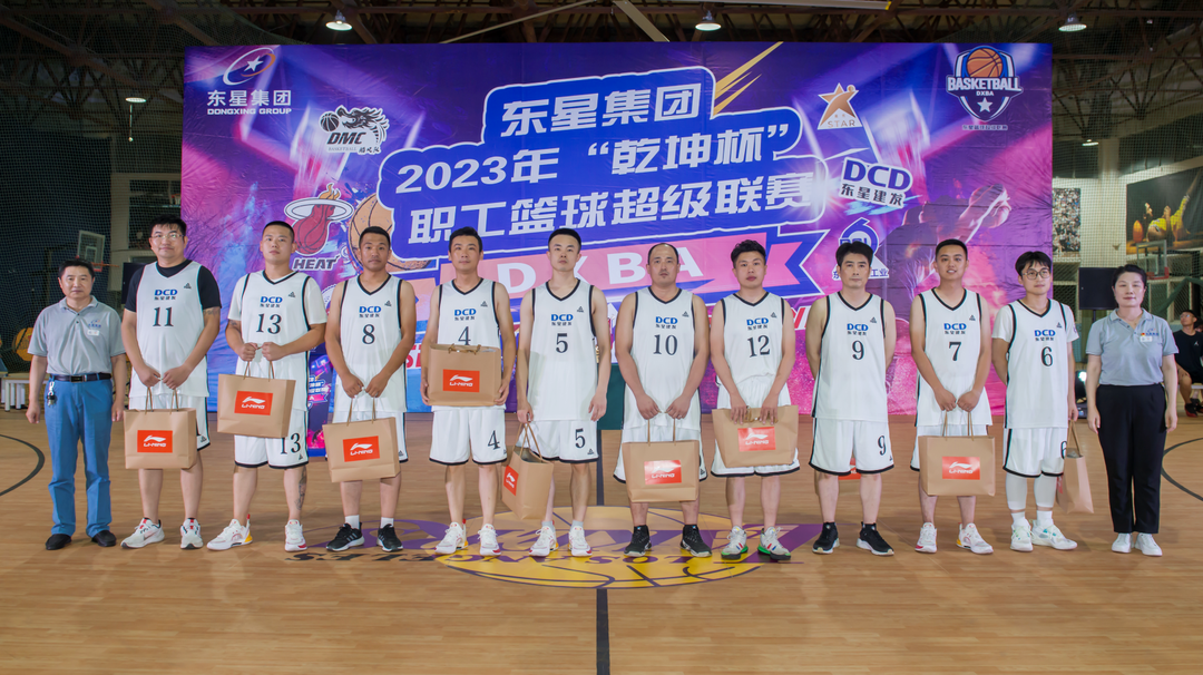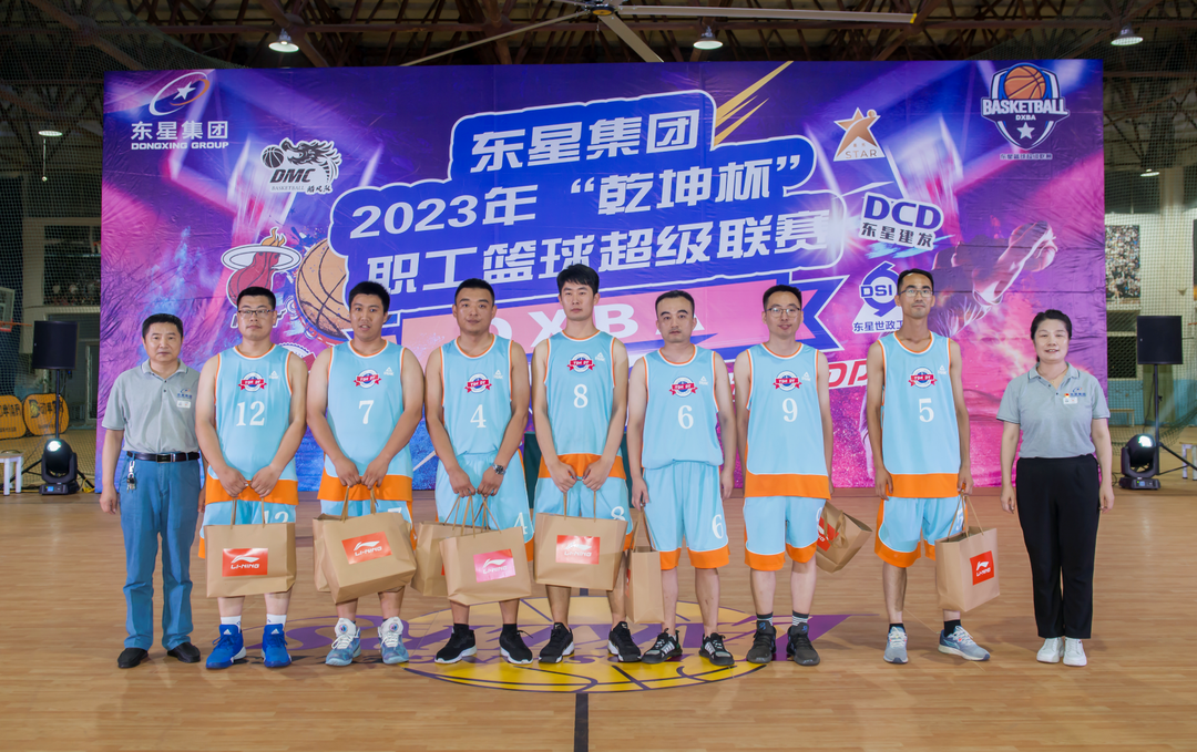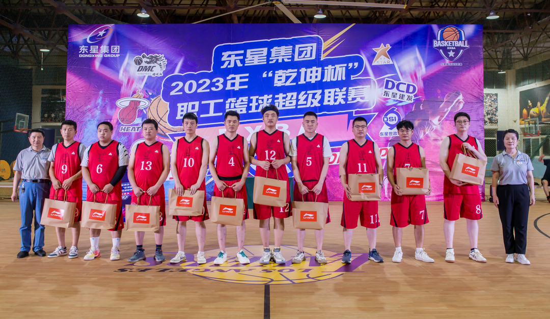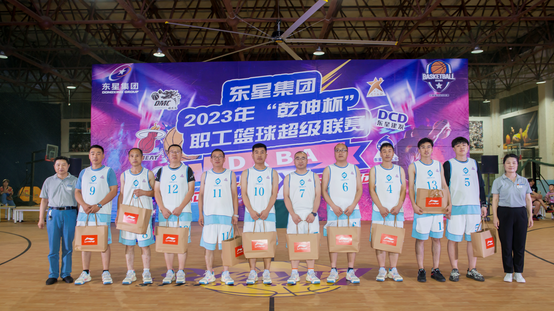 在頒獎環節,集團公司副總經理陳剛宣讀了東星集團2023年“乾坤杯”職工籃球超級聯賽獲獎團隊名單:星光隊、管路隊、YSD隊分獲冠、亞、季軍;YSM隊獲得第四名;皓風隊、夢幻隊、星石隊、夢之隊、建發電氣隊、熱火隊獲得優秀獎;建發電氣隊獲得優秀組織獎。集團公司董事長、總經理于大偉,集團公司副董事長、副總經理厲強,集團公司副總經理陳剛,集團公司工會主席李金霞、集團公司人力資源部部長高克忠分別為所有獲獎球隊頒發了獎品。當于大偉董事長親手將“乾坤杯”交到星光隊隊長劉偉手中時,現場氣氛達到了高潮。