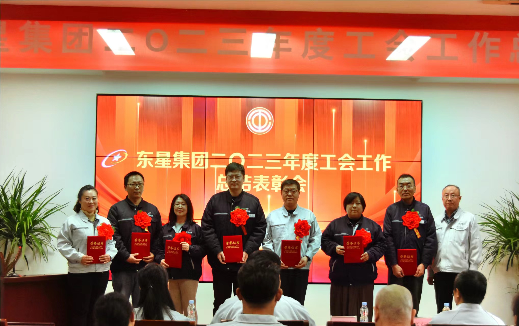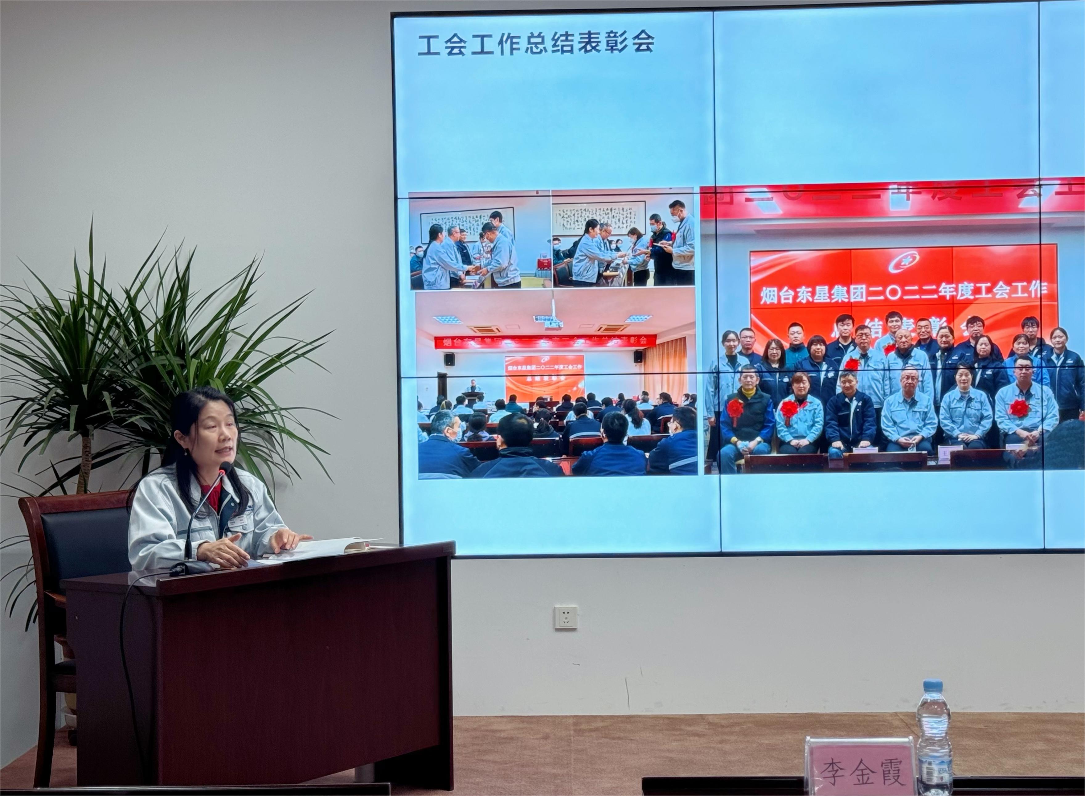 3月4日下午,東星集團2023年度工會工作總結表彰會在公司二樓會議廳召開,集團公司董事長、總經理于大偉;副總經理王建全;工會主席、黨群工作部副部長李金霞;人力資源部部長、黨群工作部副部長高克忠出席會議,集團公司本部及各長投單位的工會干部、積極分子和優秀宣傳員代表60余人參會。