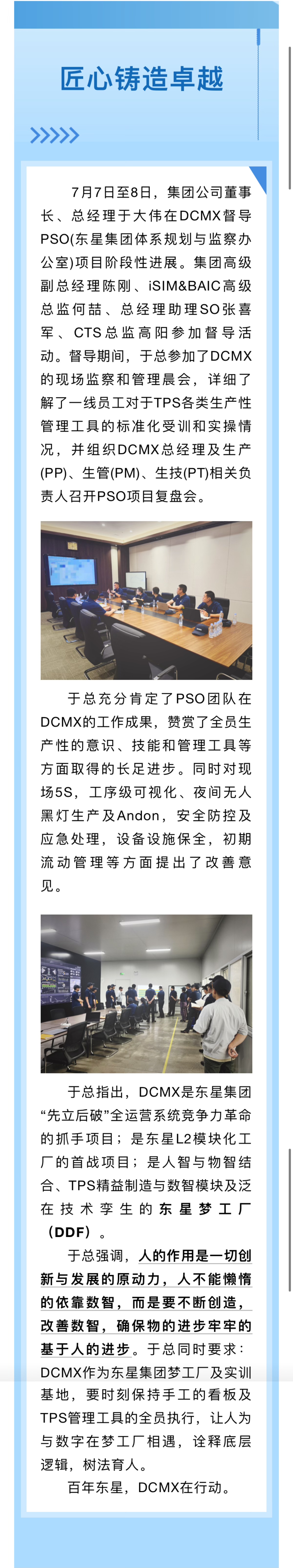 “匠心鑄造卓越,人智是創(chuàng)新與數(shù)智發(fā)展的源動(dòng)力”東星集團(tuán)高層在DCMX督導(dǎo)PSO項(xiàng)目推進(jìn)工作