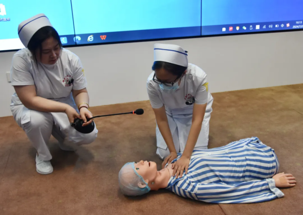 此次培訓活動結合課堂授課、操作示范與實操練習等方式,東星醫院副院長葛輝向大家生動、細致地講解了應急救護的概念、目的、原則和程序;在非醫療區域發生心臟驟停、中暑昏迷、燒傷、觸電等高風險意外事件的急救處理知識;心肺復蘇急救技能的主要步驟以及創傷救護的基本內容。東星醫院護士長趙莉分步驟演示了現場環境評估、判斷意識、檢查呼吸心跳、迅速呼救、胸外按壓、開放氣道、人工呼吸等心肺復蘇標準操作流程。